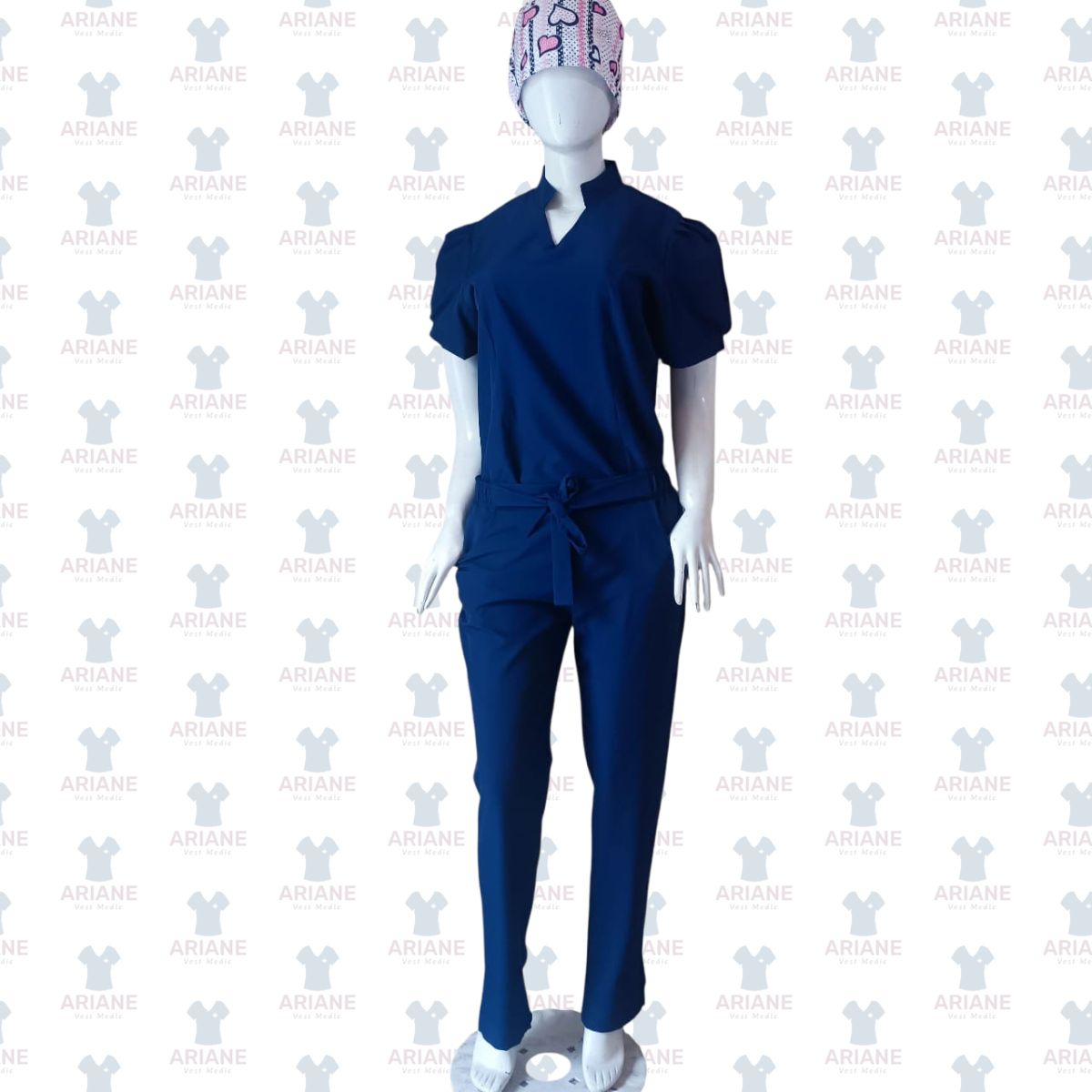 Cuello cadete manga princesa, pantalón Con detalle de tira , pantalón abertura abajo .